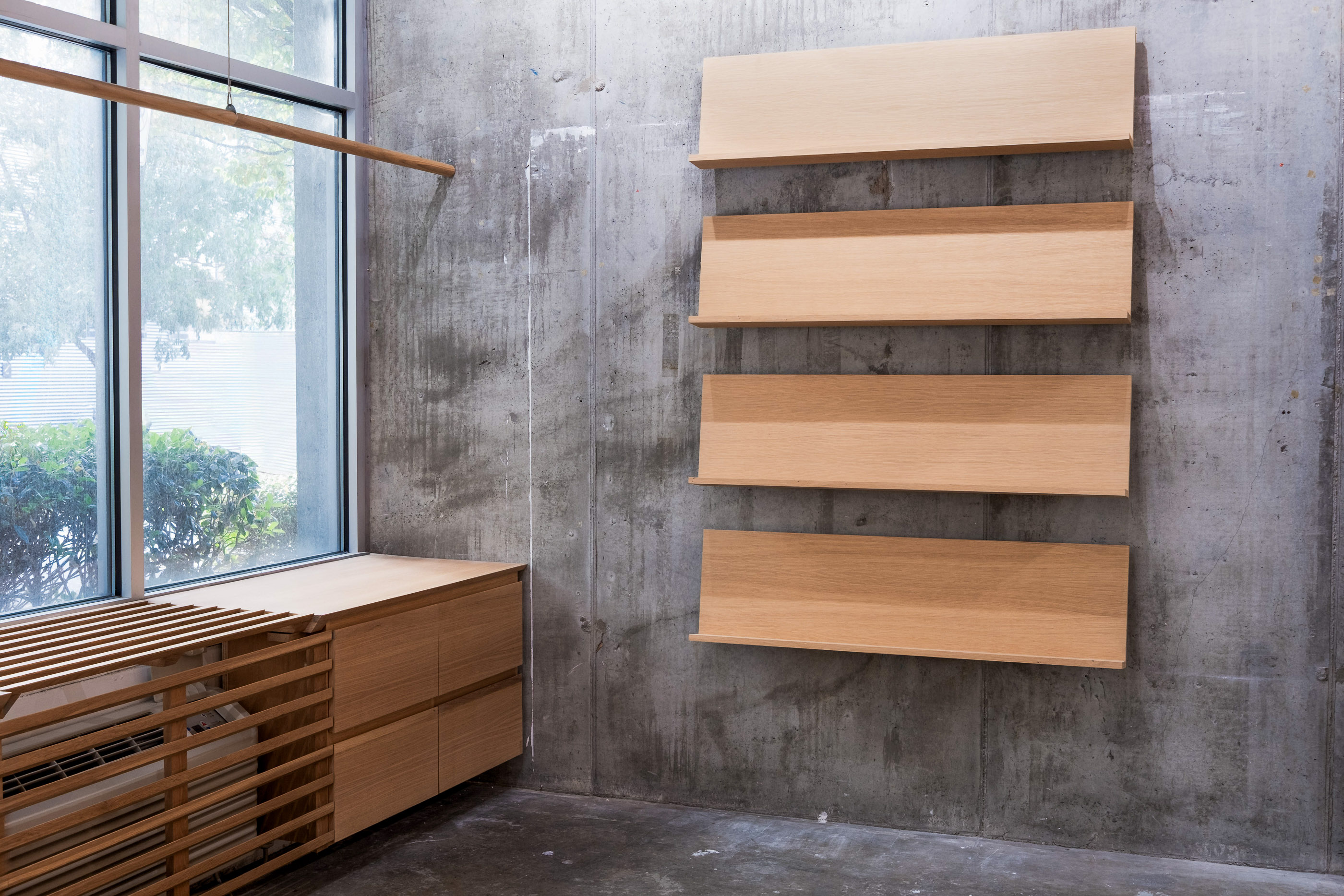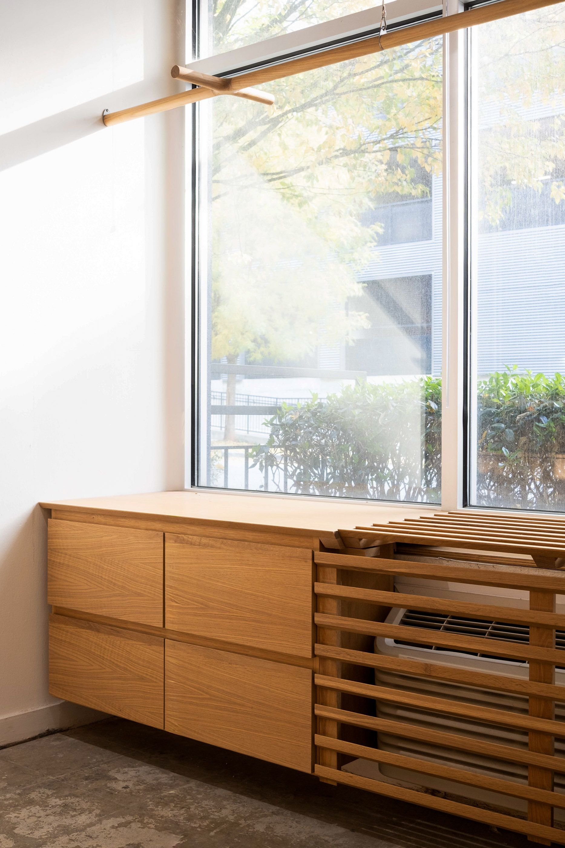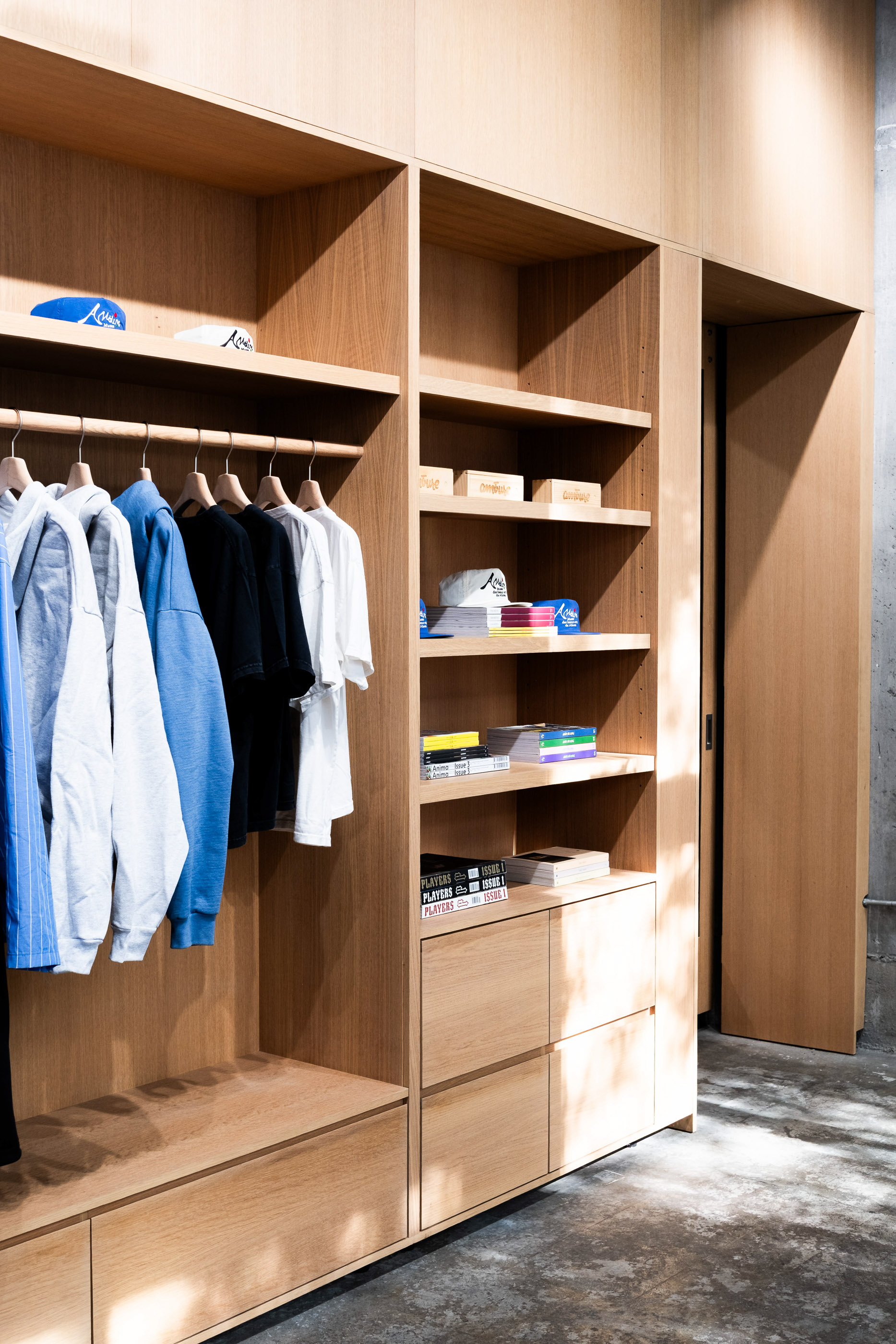 Amoure, an Atlanta-based clothing brand, invited us to build a series of fixtures to define their retail identity. While they had already drawn much of the millwork, we collaborated to fine-tune details, proportions, and functions. The fixtures needed to reflect the refinement of their garments while allowing the notably small space to remain adaptable. Our design approach emphasized restraint—clean lines, natural finishes, and a minimal palette that created a quiet backdrop for the clothing itself.